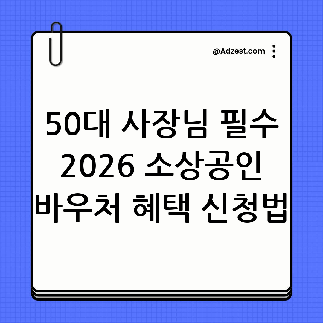 2026년 소상공인 바우처는 50대 사장님들의 가게 운영을 돕는 든든한 지원군이에요. 최대 500만원 상당의 지원을 받아 키오스크 설치나 마케팅을 할 수 있어요. 소상공인 24 홈페이지를 즐겨찾기 해두고 공고가 뜨자마자 서류를 넣어보세요.